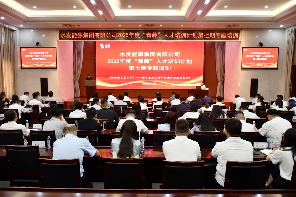 7月25日,水發能源集團舉辦“青藤”人才培訓計劃第七期培訓,法務風控部呂玥媛進行“訴訟來了怎么辦——國有企業法律糾紛案件應對與處理”專題授課。集團領導、各權屬公司負責人及業務骨干共計100余人參加。